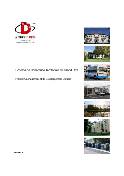 Deuxième étape de l'élaboration du SCOT, le PADD fixe les choix stratégiques et les objectifs prioritaires à mettre en oeuvre dans les quinze prochaines années. Il en constitue le projet politique. Les grands enjeux du SCOT sont rappelés : accueillir 21000 nouveaux habitants, mener une politique foncière économe, répondre aux objectifs des documents cadre et coopérer avec les collectivités voisines. Le document est organisé autour de trois objectifs : conforter l'attractivité du Grand Dax et soutenir le développement économique, constituer un territoire équilibré et solidaire en matière de cadre de vie, de logement, de déplacements, préserver et voloriser les ressources environnementales.