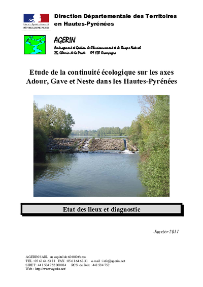 Etude de la continuité écologique sur les axes Adour, Gave et Neste dans les Hautes-Pyrénées. Etat des lieux et diagnostic.