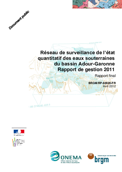 Réseau de surveillance de l'état quantitatif des eaux souterraines du bassin Adour-Garonne. Rapport de gestion 2011.