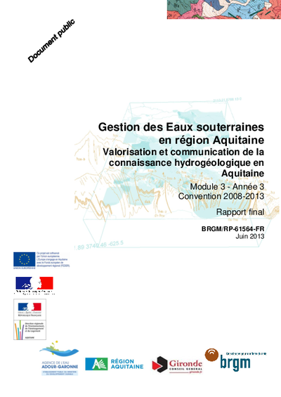 Gestion des eaux souterraines en région Aquitaine. Valorisation et communication de la connaissance hydrogéologique en Aquitaine.