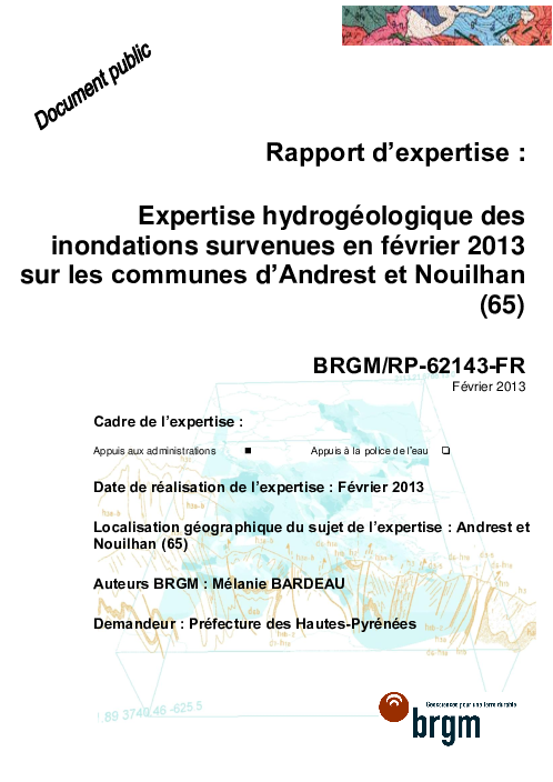 Expertise hydrogéologique des inondations survenues en février 2013 sur les communes d'Andrest et Nouilhan (65). Rapport d'expertise.