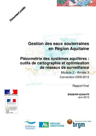 Gestion des eaux souterraines en région Aquitaine. Piézométrie des systèmes aquifères : outil de cartographie et optimisation des réseaux de surveillance. Module 2. Année 3.