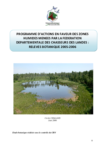 Programme d'actions en faveur des zones humides menées par la Fédération Départementale des Chasseurs des Landes : relevés botaniques 2005-2006
