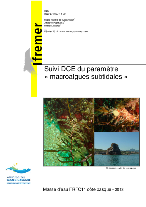 Mots clés : DCE, eau marine, flore, indicateur, macroalgue subtidale, mesure, qualité, suivi