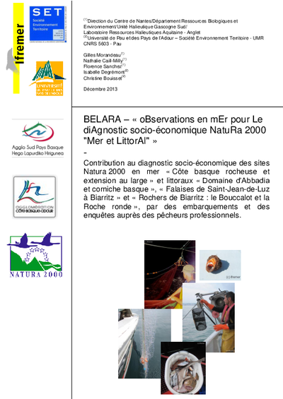 BELARA. Observations en mer pour le diagnostic socio-économique Natura 2000 Mer et Littoral.