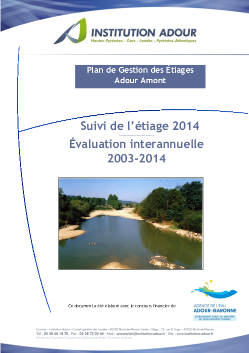 Plan de Gestion des Etiages Adour Amont. Suivi de l'étiage 2014. Evaluation interannuelle 2003-2014.