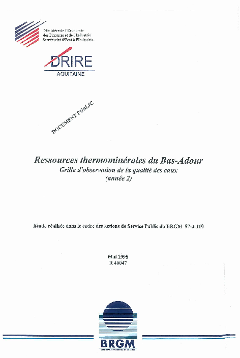 Ressources thermominérales du BAS ADOUR. Grille d'observation de la qualité des eaux.