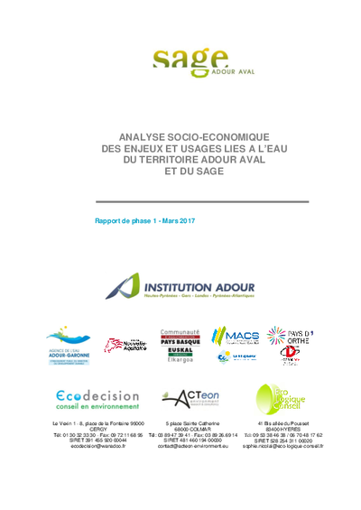Analyse socio-économique des enjeux et usages liées à l'eau du territoire Adour aval et du SAGE.