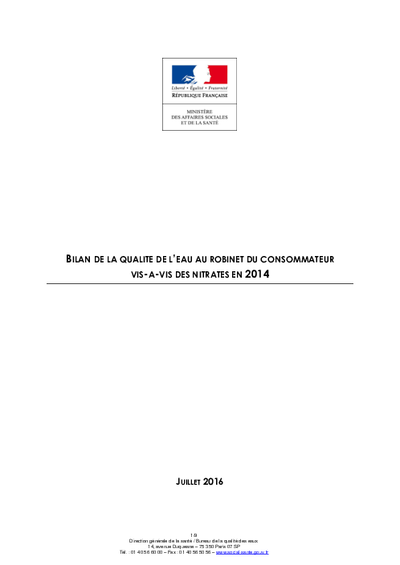 Bilan de la qualité de l'eau au robinet du consommateur vis à vis des nitrates en France en 2014