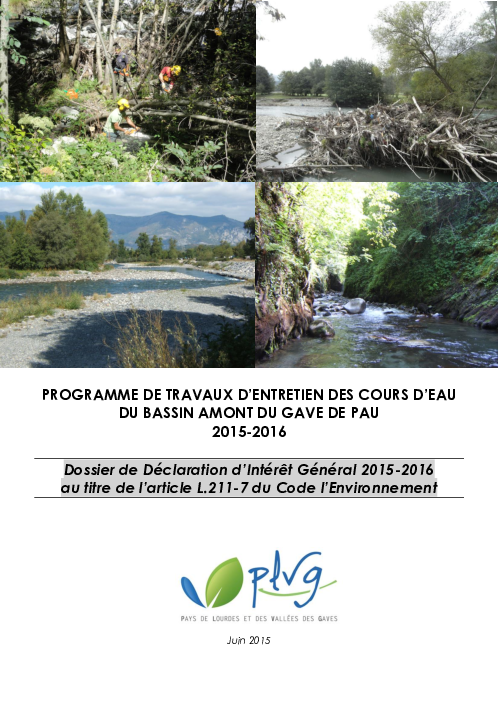 Programme de travaux d'entretien des cours d'eau du bassin amont du GAVE DE PAU - 2015-2016 - DIG