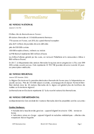 Bilan économique 2017 - Thermalisme