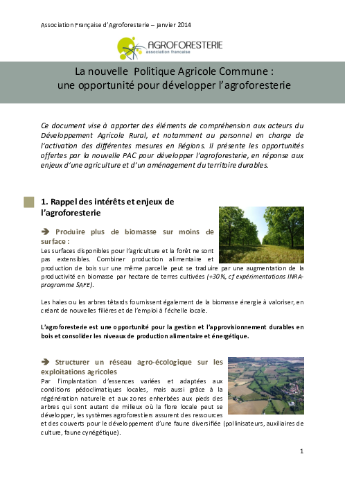 La nouvelle Politique Agricole Commune : une opportunité pour développer l'agroforesterie