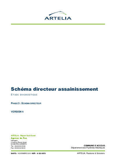 Le présent rapport sur la commune d’Accous décrit : la synthèse des principaux résultats du diagnostic ; un rappel des obligations réglementaires ; le programme pluriannuel hiérarchisé des travaux ; l’impact sur le prix de l’assainissement.