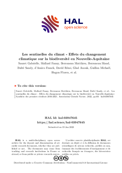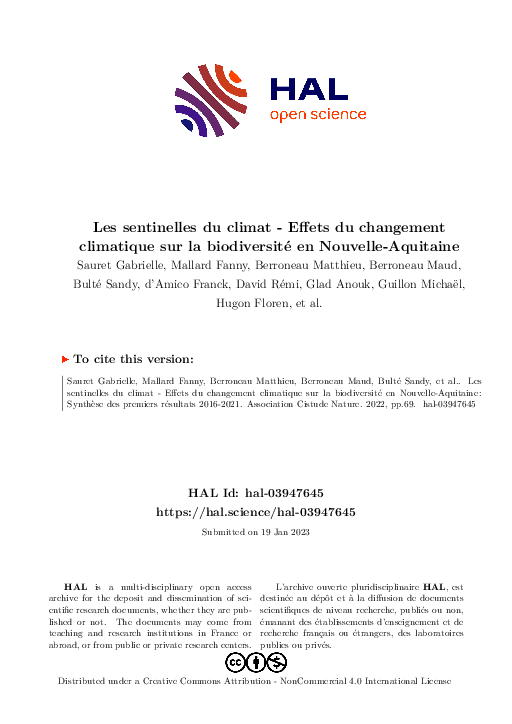 Les sentinelles du climat - Effets du changement climatique sur la biodiversité en NOUVELLE-AQUITAINE : synthèse des premiers résultats 2016-2021