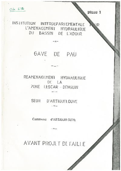 GAVE DE PAU - Réaménagement hydraulique de la zone LESCAR-DENGUIN. Seuil d'ARTIGUELOUVE - Commune d'ARTIGUELOUVE. Avant projet détaillé.