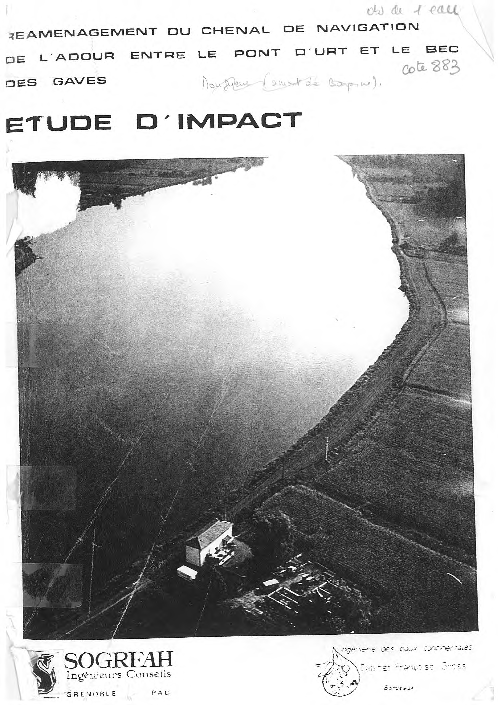 Réaménagement du chenal de navigation de l'Adour entre le pont d'URT et le BEC DES GAVES. Etude d'impact.