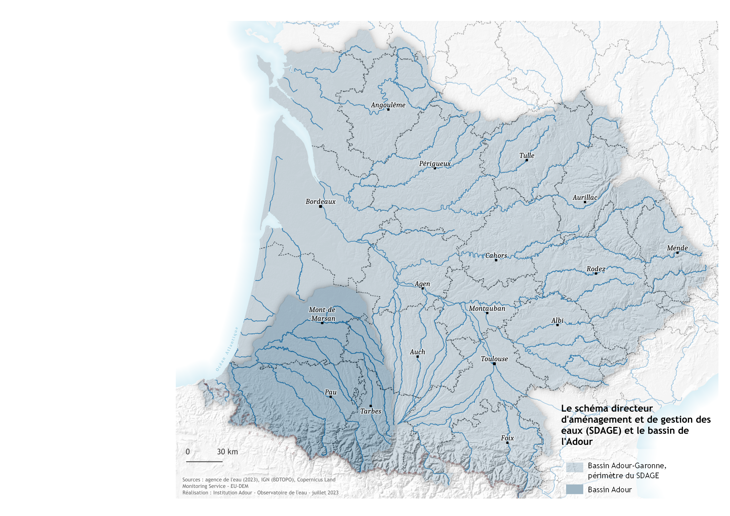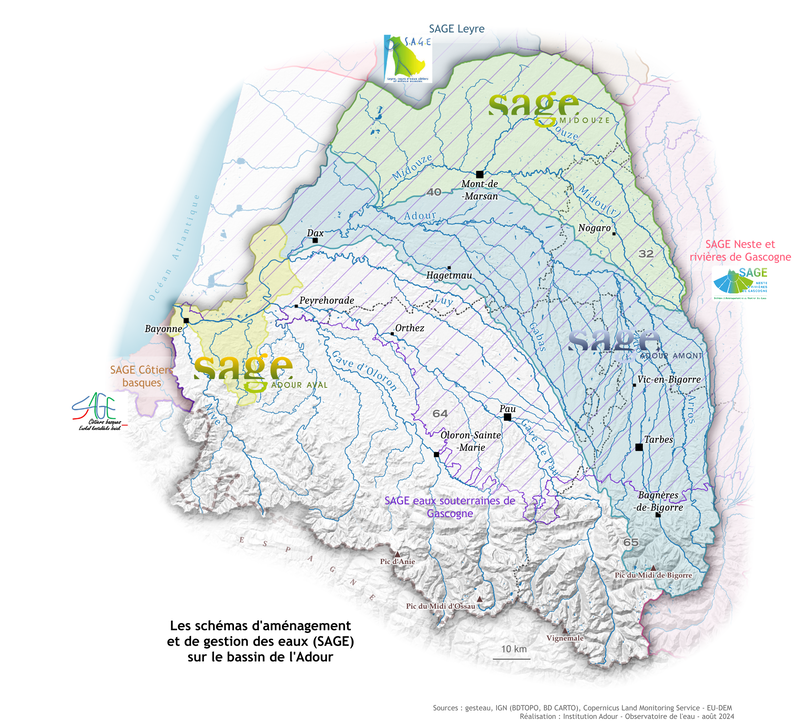 Sur le bassin de l'Adour, trois SAGE sont en vigueur :