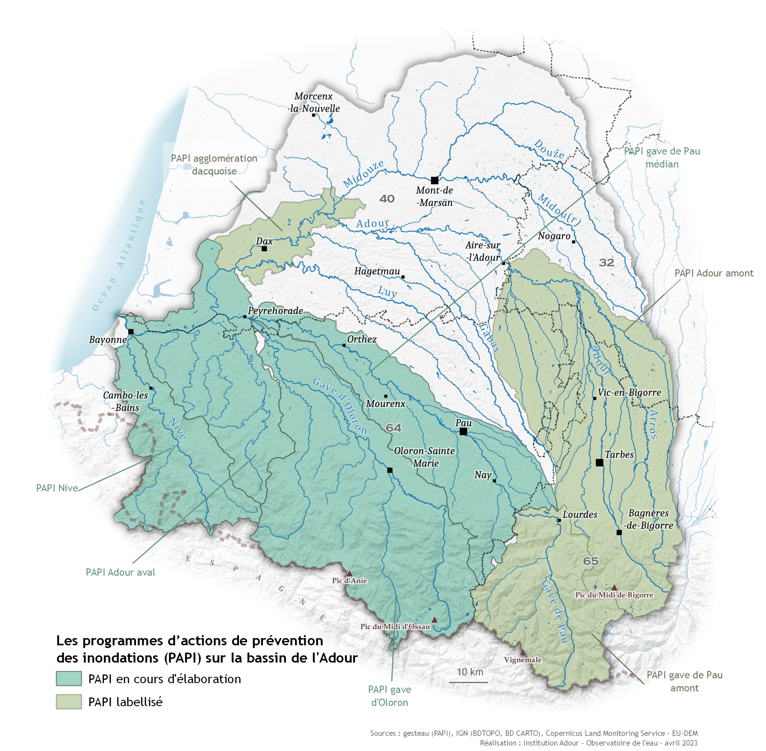 Sur le bassin de l'Adour, quatre PAPI sont mis en œuvre :