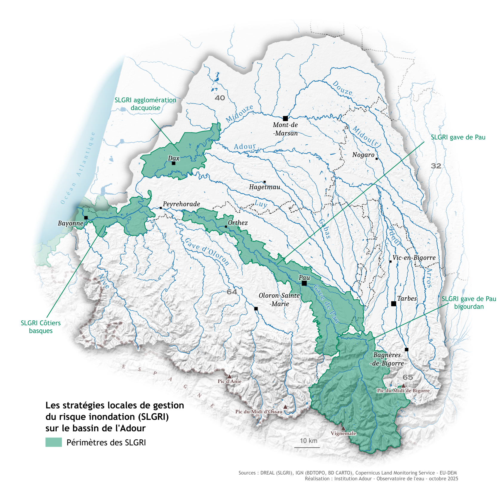 Sur le bassin de l'Adour, quatre TRI et SLGRI ont été définis par l'Etat :