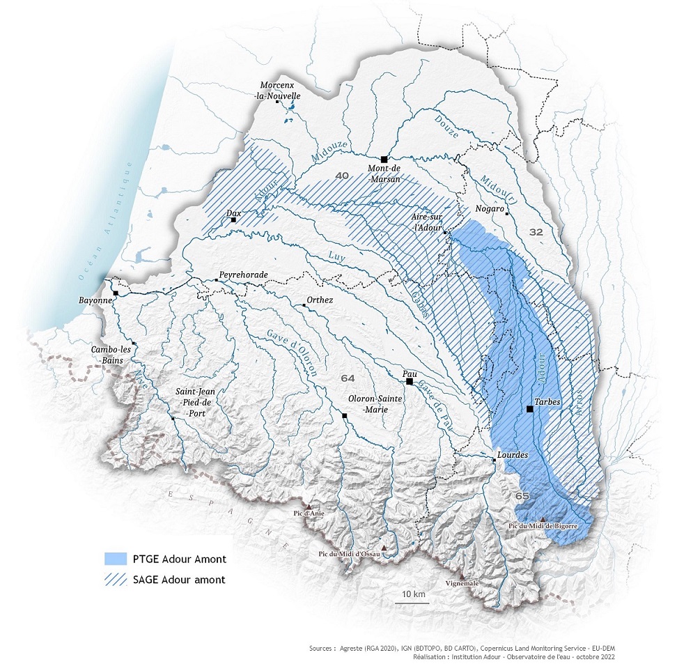 Le projet de territoire pour la gestion de l'eau de l'Adour en amont d'Aire s'inscrit dans le périmètre suivant :