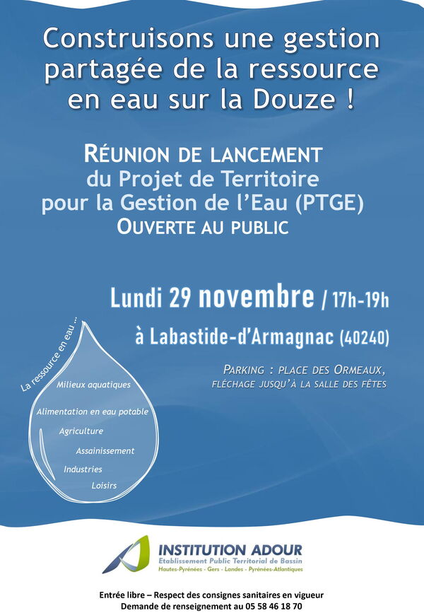Un projet de territoire pour la gestion de l’eau est donc envisagé sur la Douze pour répondre aux enjeux quantitatifs et qualitatifs de la ressource en eau du territoire.